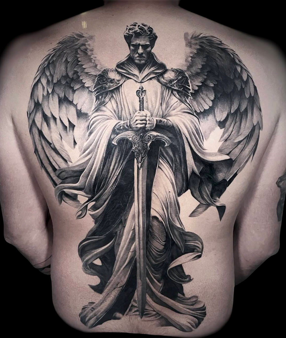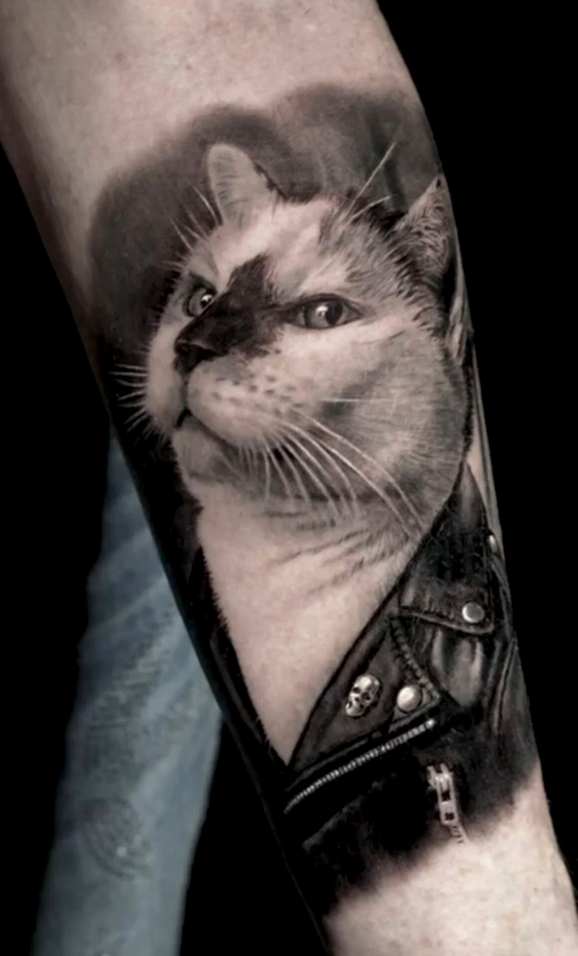 Anche Francesca (IG: @francescadilodovico), proprio come Eduardo, l’avevo vista all’opera durante un seminario e mi avevano colpito le sue qualità artistiche. Una cosa che mi stupisce ogni volta che lavora in studio è la sua velocità d’esecuzione, che non tralascia mai il minimo dettaglio. Mi piace scherzare con lei su questo: essendo così rapida riesce sempre a terminare entro le sei di sera, per questo la chiamo ironicamente “la statale”. Manuel (IG: @manuel.quadri.tattooer) è stato l’ultimo a unirsi al gruppo. Le sue doti artistiche nel Realistico stanno migliorando guest dopo guest. Ha tantissima voglia di imparare e non perde occasione per chiedere consigli, cosa che di mio apprezzo molto. Posso aggiungere una cosa?