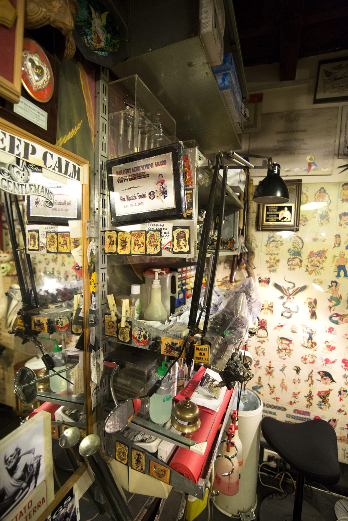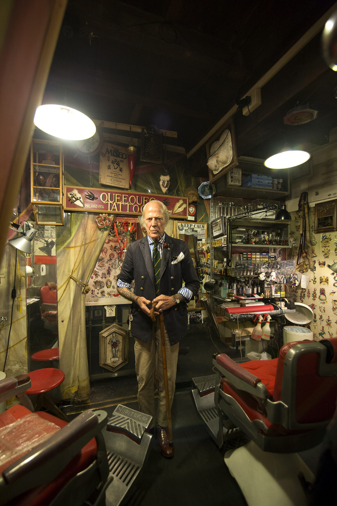 Se avevi due rondini maschio voleva dire che eri gay e inchiappettato la prima volta. Se avevi un maschio e una femmina eri accomodato e se avevi due femmine eri un porco. E allora venivano tutti con te quando si sbarcava a terra perché sapevi dove andare. Un giorno mi entra uno tutto bullo patetico e mi dice che voleva un tatuaggio classico. Mi dice che ha già un tatuaggio e mi fa vedere due rondini maschio. E gli dico che è gay. E lui non sapeva neanche niente di questo vecchio lessico dei tatuaggi. Del vero gergo del tatuaggio! Cosi come le pin up. I vecchi marinai che non mostravano mai i propri tatuaggi quando giocavano alle carte si ritrovavano a giocarsi la pin up nuda. Erano importanti quelle che muovendosi sculettavano. Poi ce n’era una classica che io facevo ‘ai buongustai’ che con il movimento del braccio si metteva a pecorina. E per gli ancora più raffinati: dietro alle spalle c’era sempre una nuvoletta o una luna. Sembrava una cosa garbata e romantica ma vista assieme a seconda del movimento del braccio, in realtà era la pin up che scoreggiava! Tutte cose che i giovani non sanno neanche. Non si interessano. Il tatuaggio oggi è un mezzo per fare le dive. Che disastro…