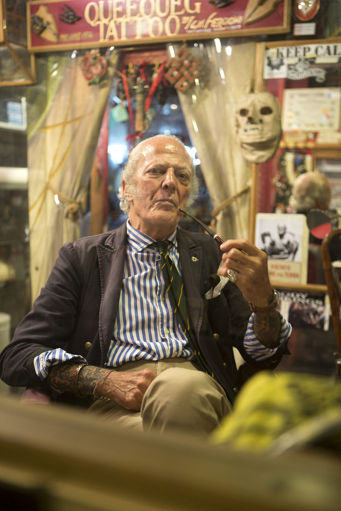 Fercioni è stato molto più di un tatuatore ante litteram: è stato un costruttore di mondi. “Sono un dandy da sempre, con tre grandi passioni: vela, teatro, tatuaggio” ci aveva detto parlando di sé. E così è sempre stato: un lord con i baffi in su e uno stile inconfondibile.