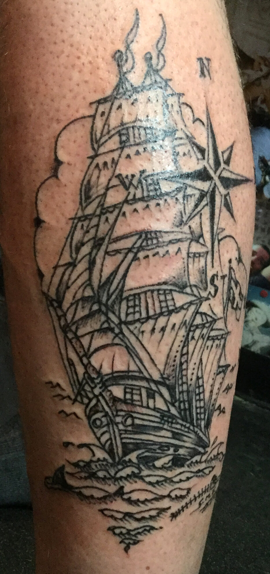 A 17 anni andai via da Milano per la passione della barca a vela. E a Viareggio (Toscana) conoscevo delle persone che erano broker e combinava i trasferimenti di barche costruite in cantieri del nord al Mediterraneo perché gli italiani erano dei bravissimi ebanisti. Per cui io trasferivo queste barche. Navigavo senza niente, giusto l’amaca per dormire, dei motorini elettrici che si attaccavano sull’asse giusto per le manovre maggiori, perché i motori erano nuovi e quindi sigillati. Venivamo dalla Norvegia, partivamo da Oslo, facevamo la Manica, il golfo del leone e entravamo dallo stretto in Mediterraneo. Io nella tradizione mia del tatuaggio avevo un po’ i ricordi di questi posti qui. In ogni porto mi facevo un tatuaggio. Quando partivo da Amburgo arrivavo a Marsiglia e cercavo una barca da portare via. Scendevo a terra e lì facevo teatro e tatuaggi. Facevo lo scenografo e il costumista.
