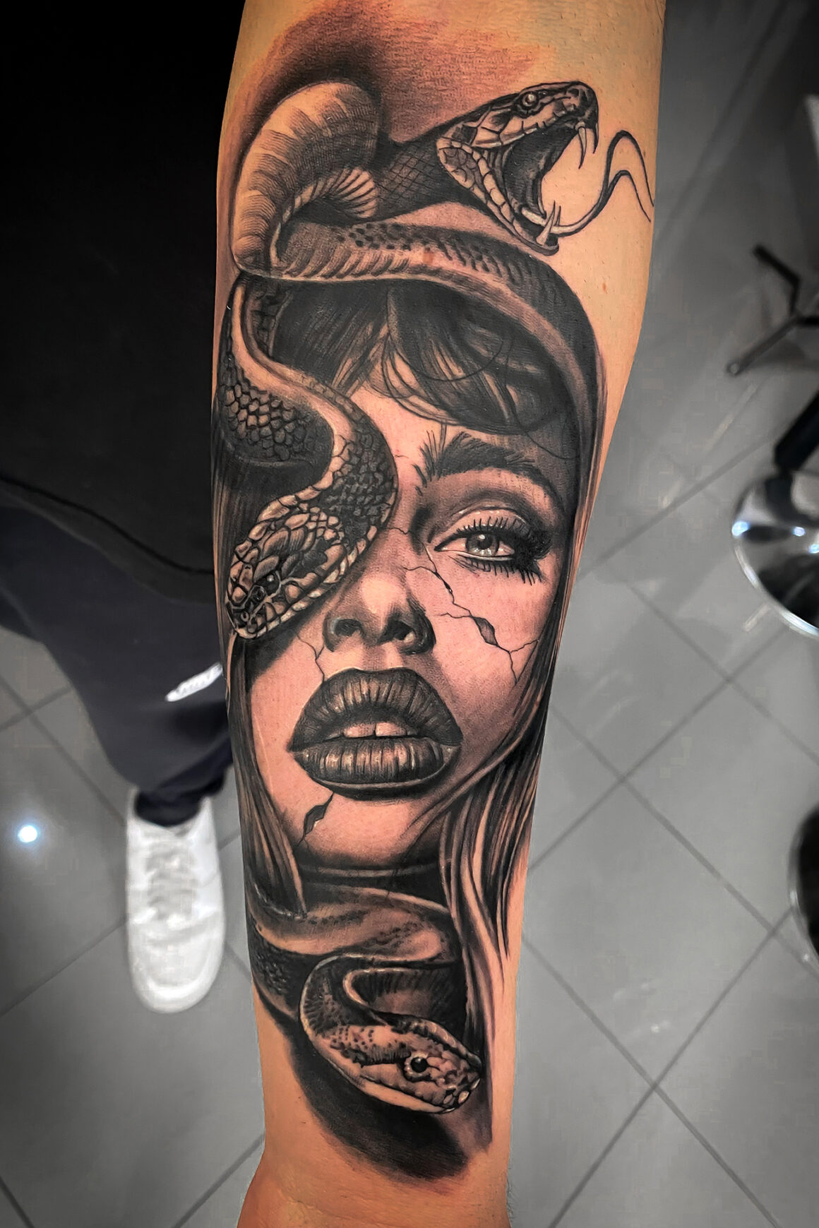All’inizio, come tutti, tatuavo qualsiasi cosa. Reputo che sia necessario saper tirare una linea dritta o fare una buona stesura di colore. Poi sono passato allo stile Giapponese, ma fu nel 2013 – durante una determinata tattoo convention – che ammirai il mondo del Black-n-Grey con artisti che venivano da tutto il mondo.