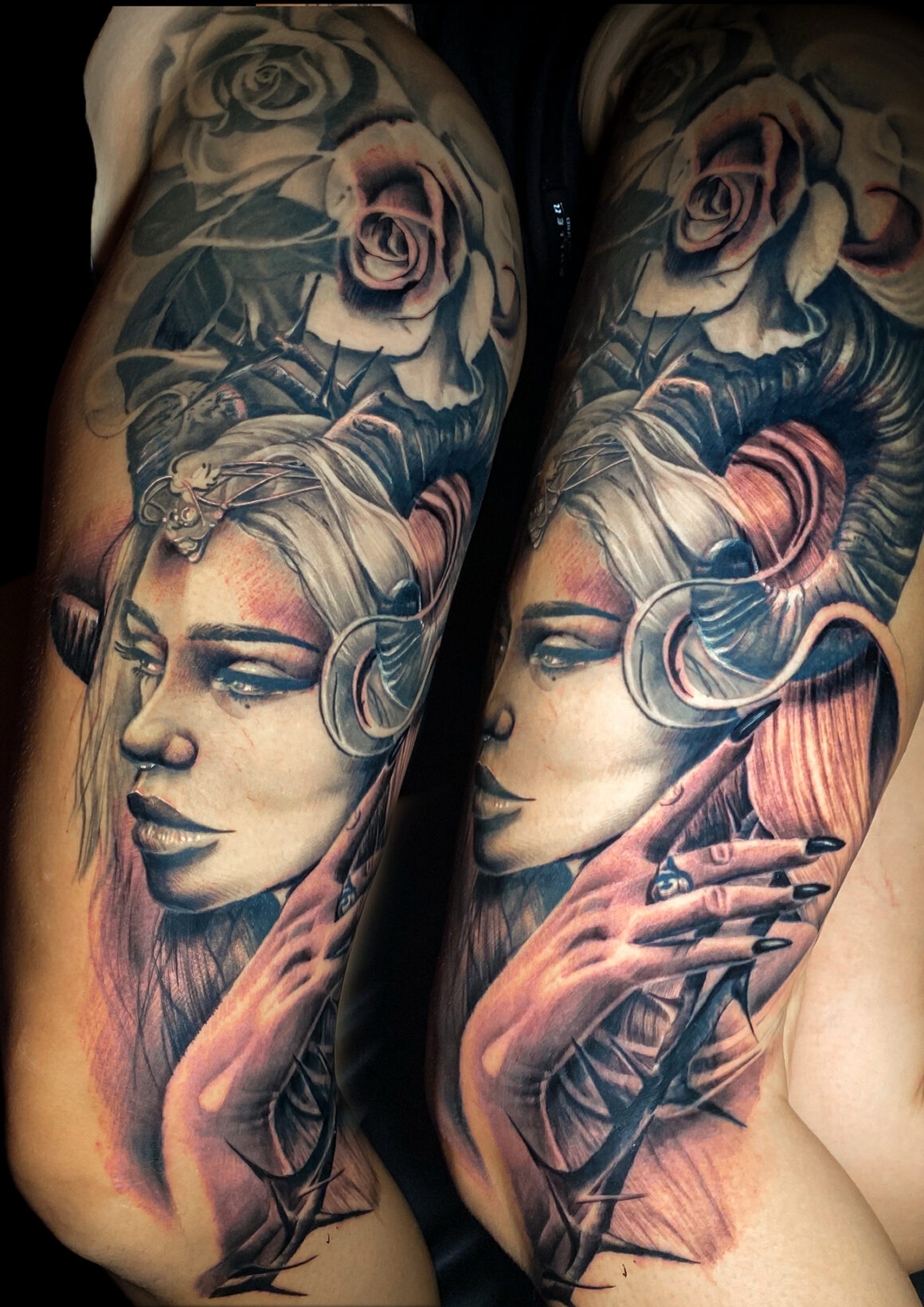 Tatuo da circa dodici anni, ma a livello professionale sono circa otto. Ho iniziato questo mestiere perché sentivo la necessità di realizzarmi in qualcosa di “mio” e, visto che il disegno ha sempre fatto parte della mia vita, ho pensato: “Hey, perché non farlo direttamente sulla pelle?”. Così ho chiuso la mia prima attività (una palestra di muay thai) e ho comprato il necessario per iniziare questo viaggio meraviglioso all’interno della tattoo art.